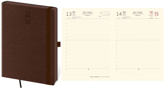 Diář Memory, denní, A5 s gumičkou, tmavý hnědý 2026