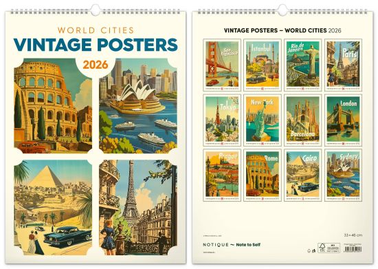 Nástěnný kalendář, Vintage plakáty - světová města 2026